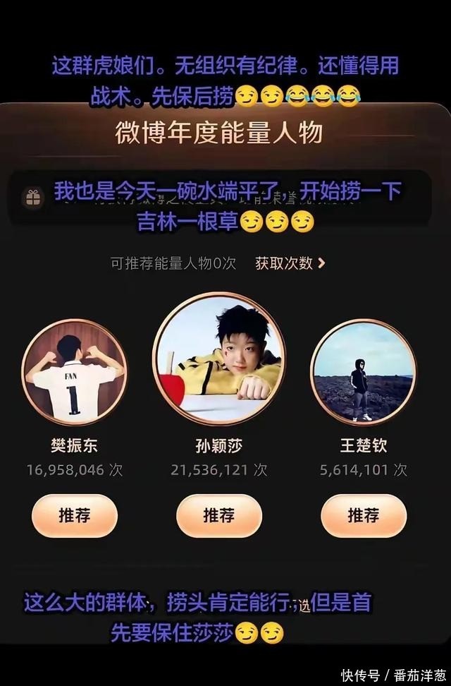 这战术执行得那叫一个默契——前几天全力冲莎莎,现在看莎莎断层第一了,大家立马调转方向,开始给吉林一根草猛补票。